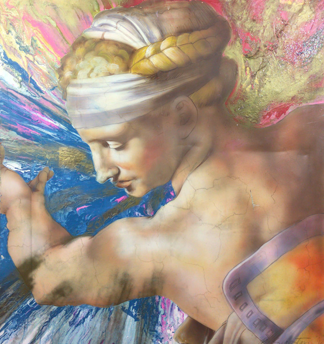 Mixed media on canvas, 34 x 40 inches