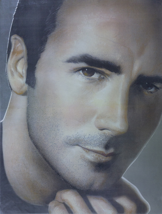 Graphite/charcoal airbrush and a plastic stencil, 36 x 30 inches